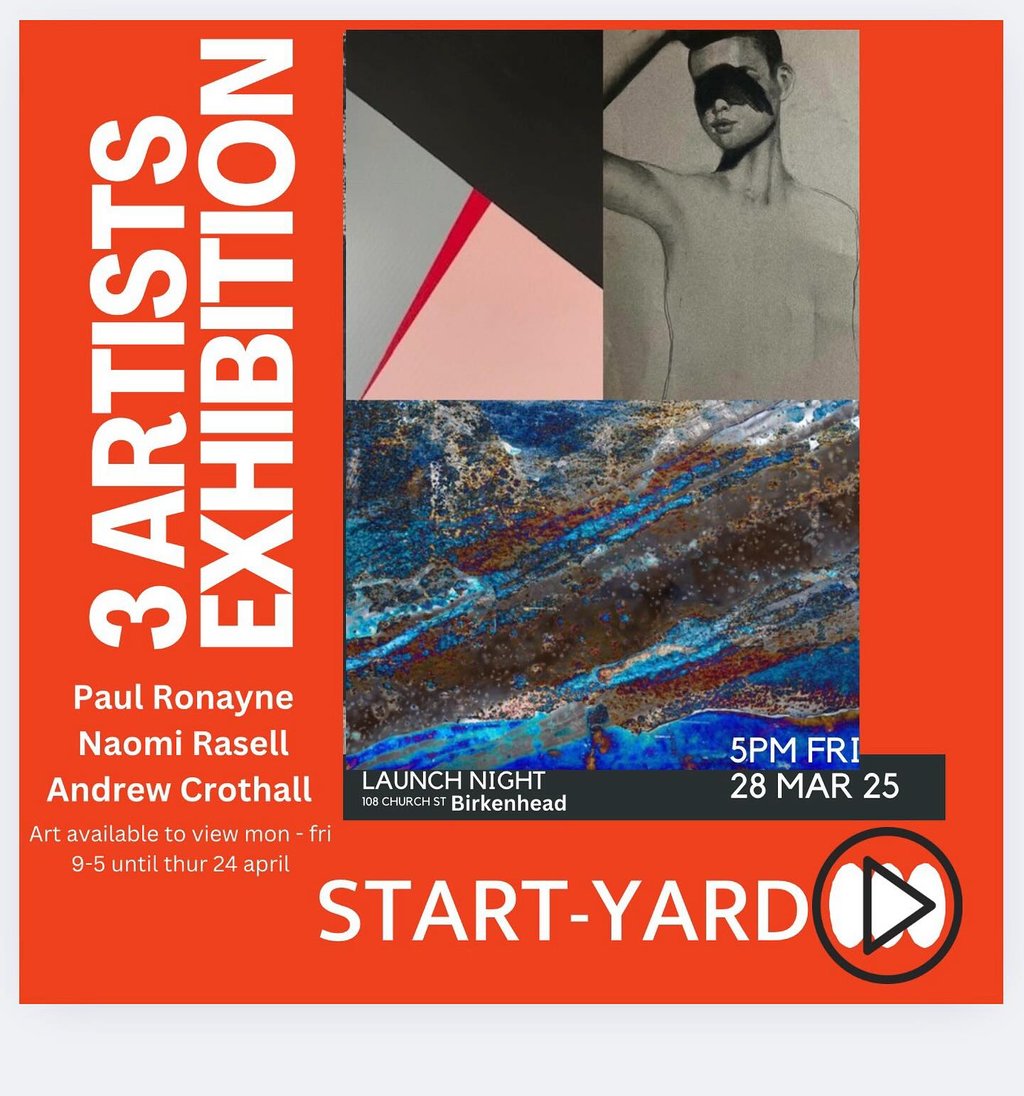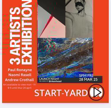 I'm really looking forward to taking part in the 3 Artists exhibition at Start Yard in Birkenhead. It is taking place between Friday 28th March and Thursday 24th April and I will be exhibiting alongside Naomi Rasell and Paul Ronayne.
